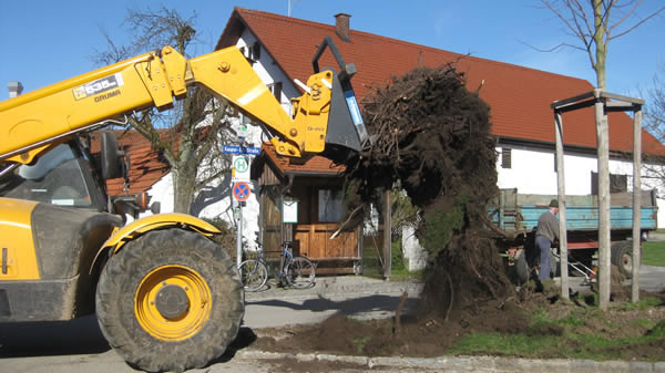 ...entfernt die Wurzeln der alten Kastanie